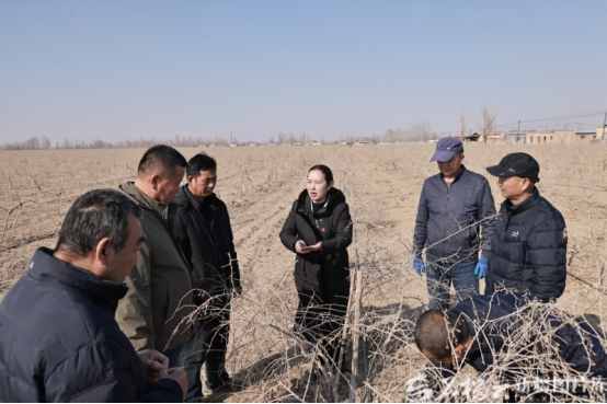 3月14日,全国人大代表吴文秀(中)在枸杞种植园宣传全国两会精神。张健霆摄