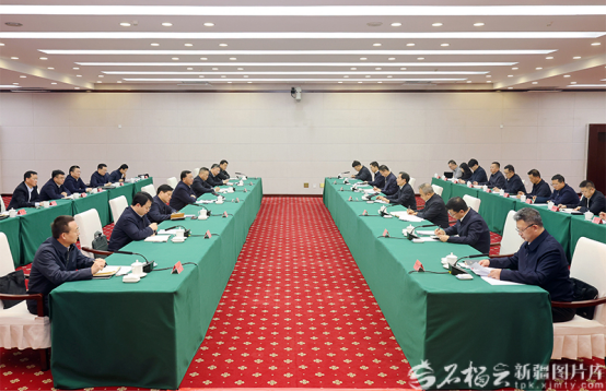 12月17日,自治区党委书记陈小江、自治区主席艾尔肯·吐尼亚孜在乌鲁木齐会见中国铁道建筑集团董事长戴和根一行。石榴云/新疆日报记者崔志坚摄