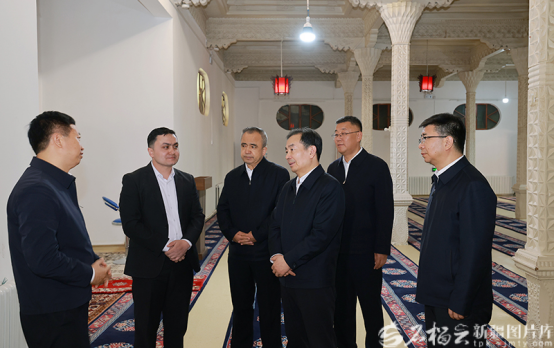 3月24日,自治区党委书记陈小江、自治区主席艾尔肯·吐尼亚孜在和田市伊里其乡托甫恰清真寺,详细了解宗教活动开展、宗教人士关爱培养等情况。石榴云/新疆日报记者崔志坚摄