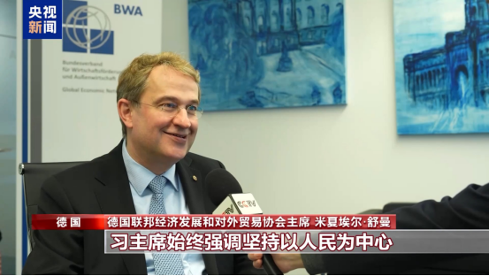 德国联邦经济发展和对外贸易协会主席米夏埃尔·舒曼:习主席始终强调坚持以人民为中心,这一重要理念值得全球关注。在欧洲,发展不平衡问题加剧令人担忧,对此我们需要思考和调整。